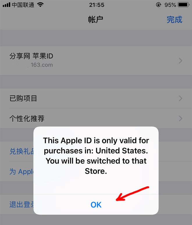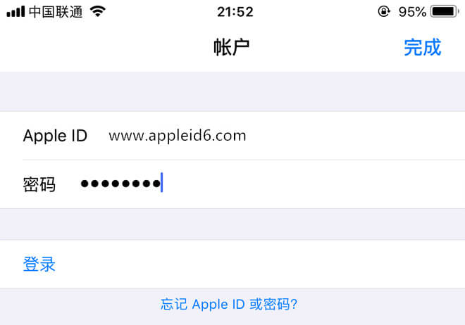 3:输入外区苹果ID账号以及密码,这里要注意一下的是密码要注意大小写,另外切勿多次输错账号或密码, 多次输入错误会导致账号直接进入锁定状态的。
